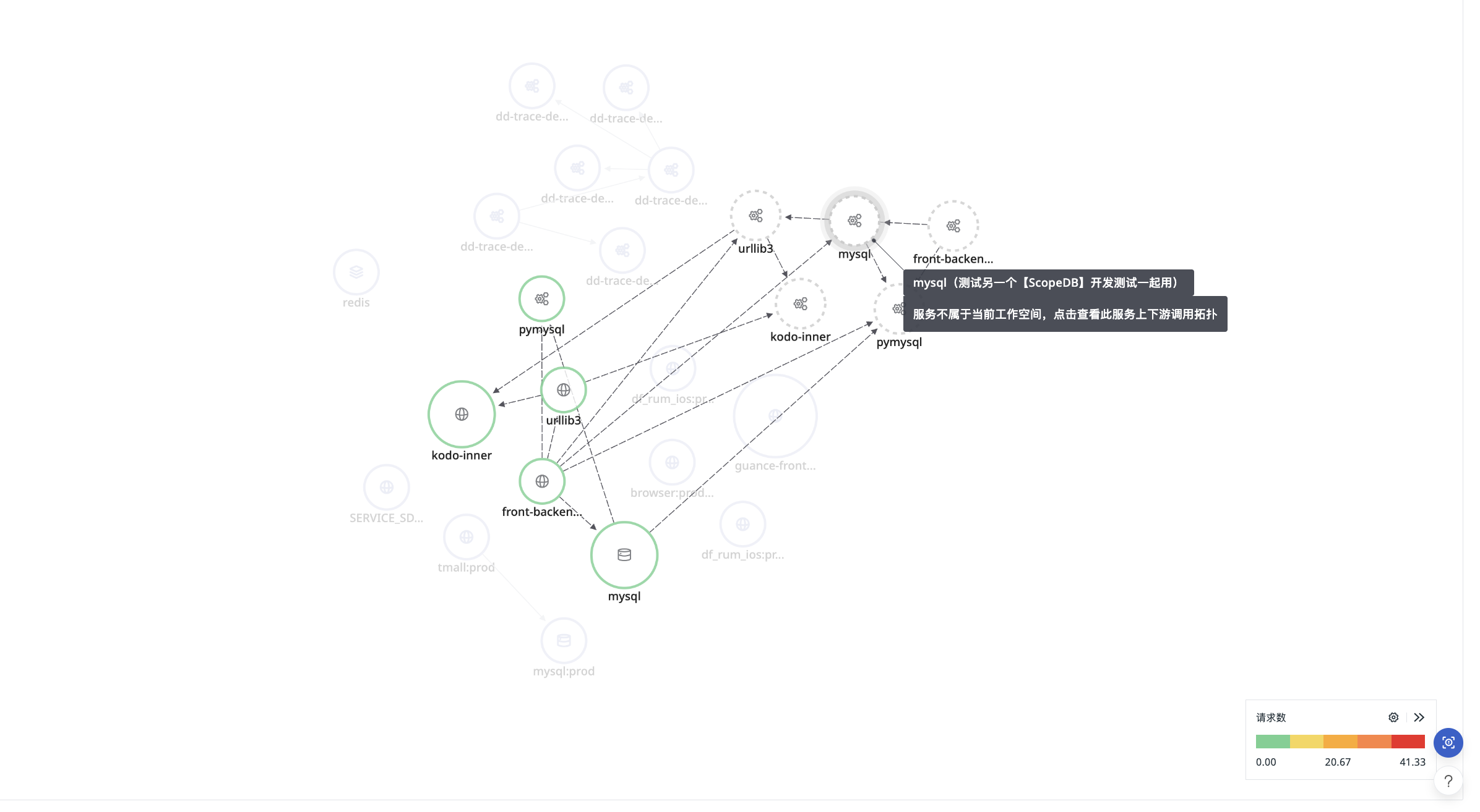 If the same Trace data is split, the data will belong to different workspaces, and in this case, it is not possible to view the complete trace data in a single workspace. However, cross-workspace Service Map query ensures the continuity of data query, allowing you to directly click the button in the current workspace to view the upstream and downstream call topology of the current service.