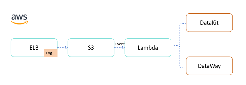 Access applications on ELB, ELB will upload generated logs to S3, and Lambda function will fetch and report them to TrueWatch