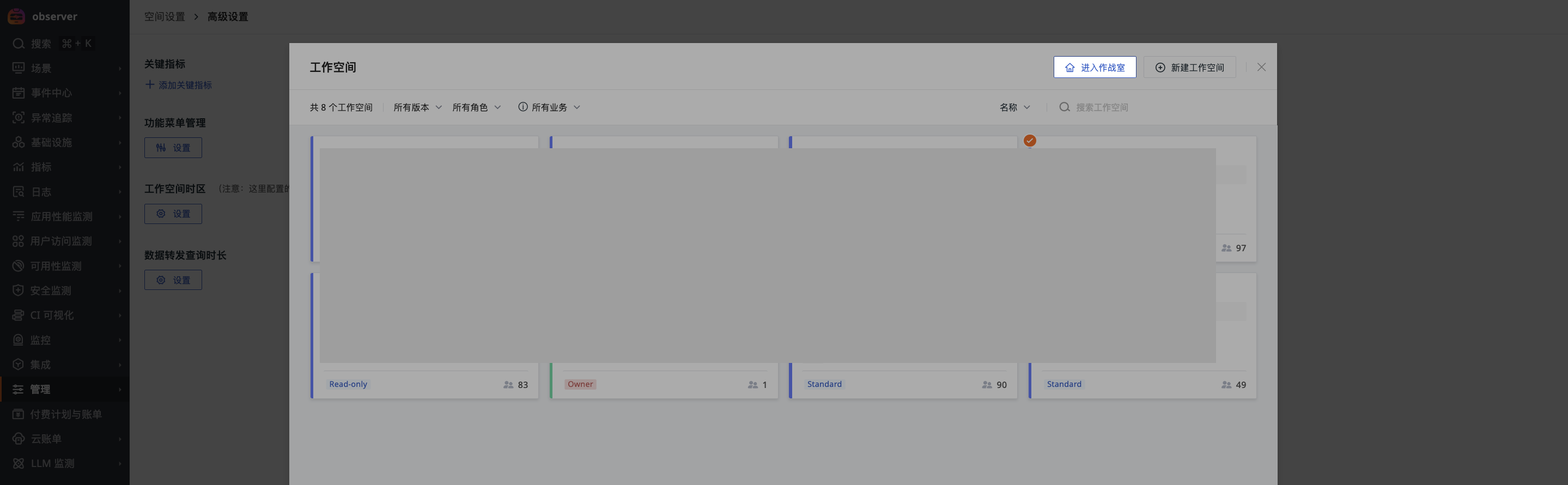 The system provides a Warroom dashboard where you can view the key metrics trends of all workspaces at a glance, helping you quickly understand the key data status of each workspace and promptly identify and resolve anomalies.