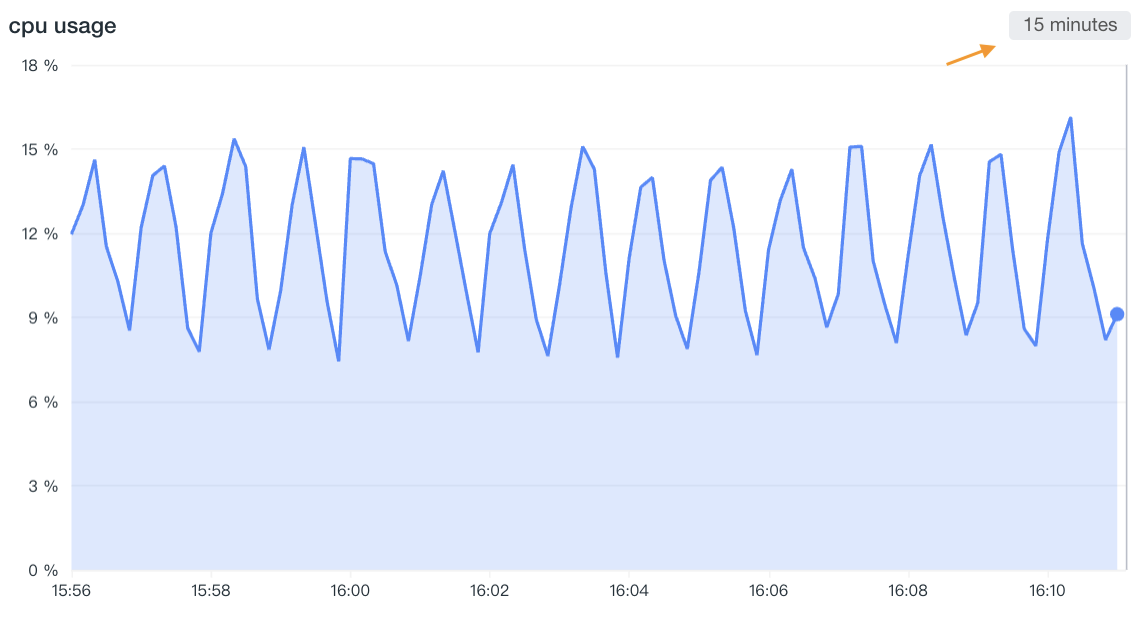 For example, if the current time point is 11:33 and the time range selected is "Last 1 hour", the timeline range is 10:33 - 11:33.