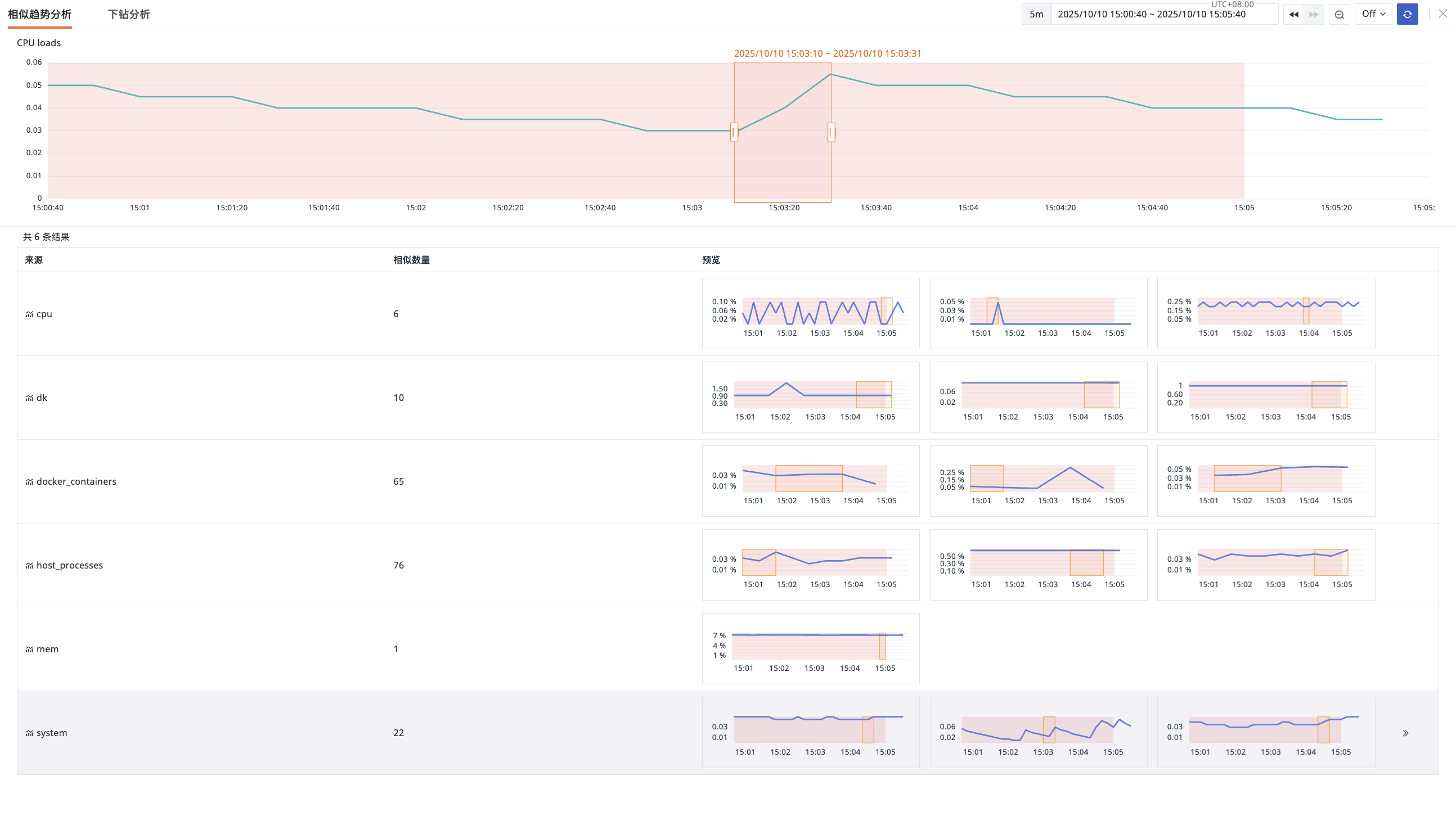 "Similar Trend Metrics" refers to other Metrics that have similar trend changes within a certain time range compared to the currently selected Metric.